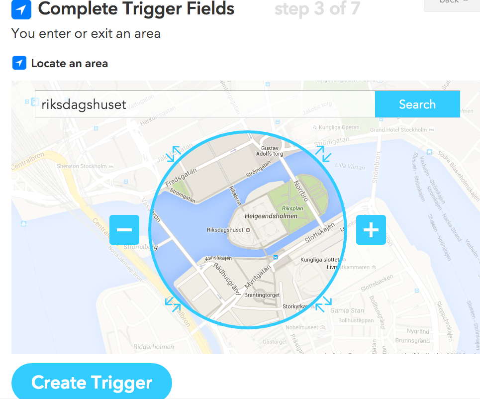4) Sök upp aktuell adress där du utför ditt projekt och välj ”Create Trigger”