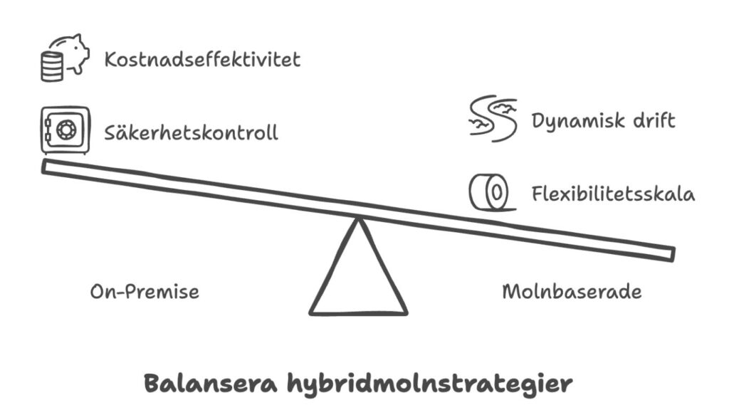 Innan man börjar bygga en hybridmolnslösning är det viktigt att ha en klar strategi. Vad ska ligga kvar on-premise, och vad hör hemma i molnet? Känslig data eller tunga legacy-system kan kräva lokal kontroll, medan skalbara och dynamiska applikationer ofta gynnas av molnets flexibilitet. En tydlig policy och en noggrann analys av affärsbehov hjälper till att fatta rätt beslut.